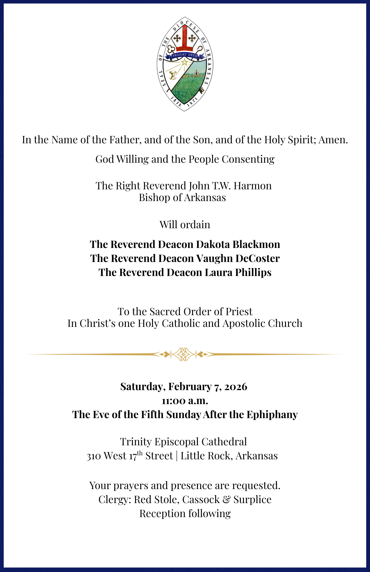 Will ordainThe Reverend Deacon Dakota Wayne Blackmon